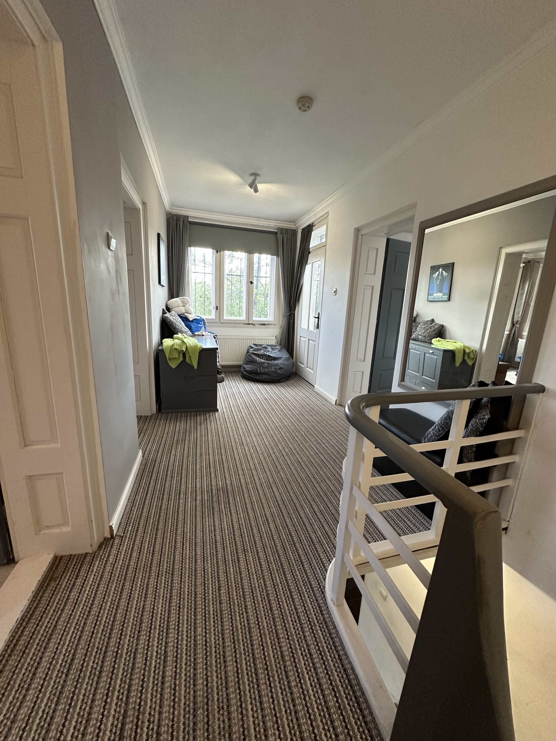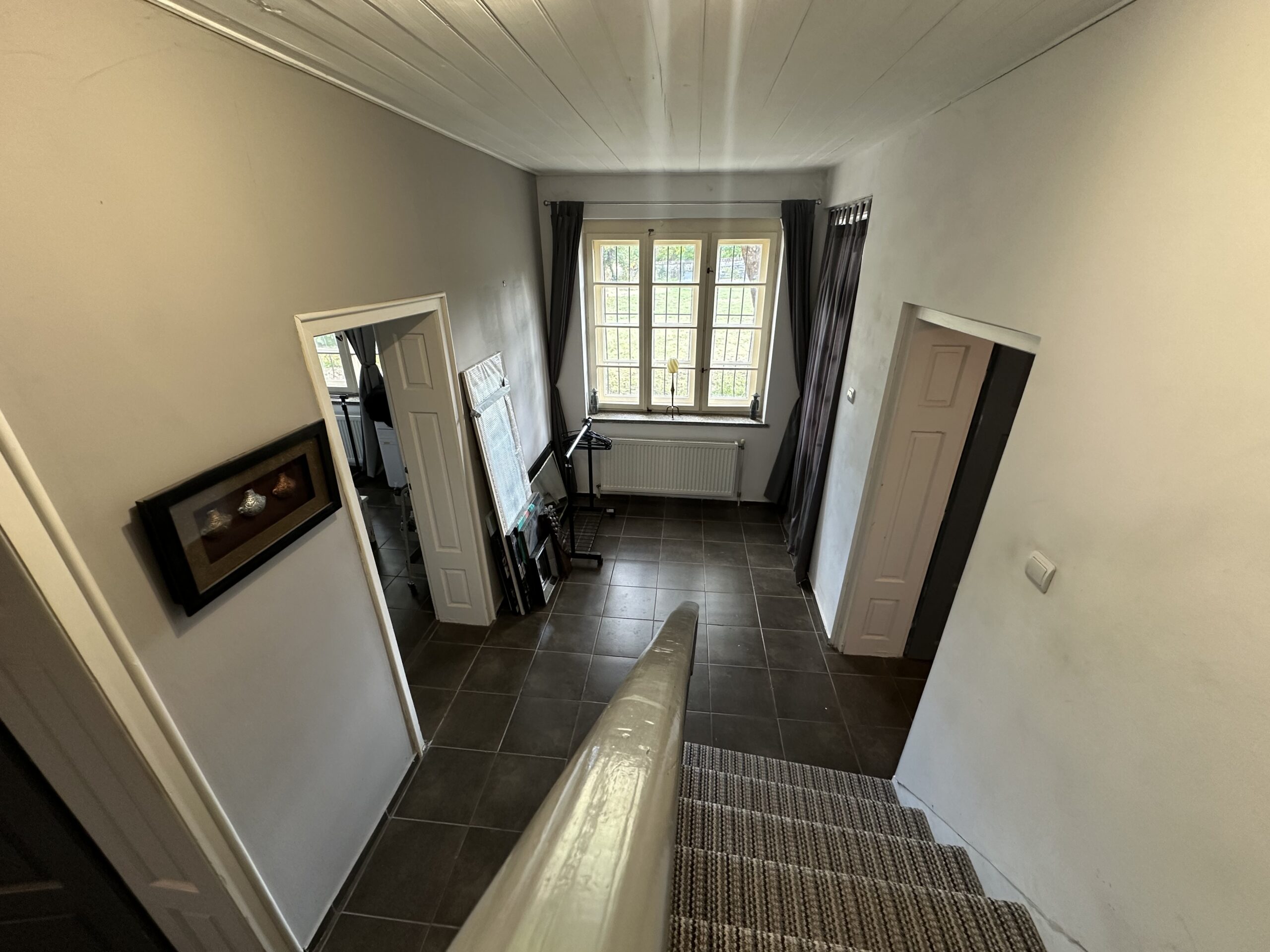 โข Original Art Deco staircase leading to a light-filled upstairs hall