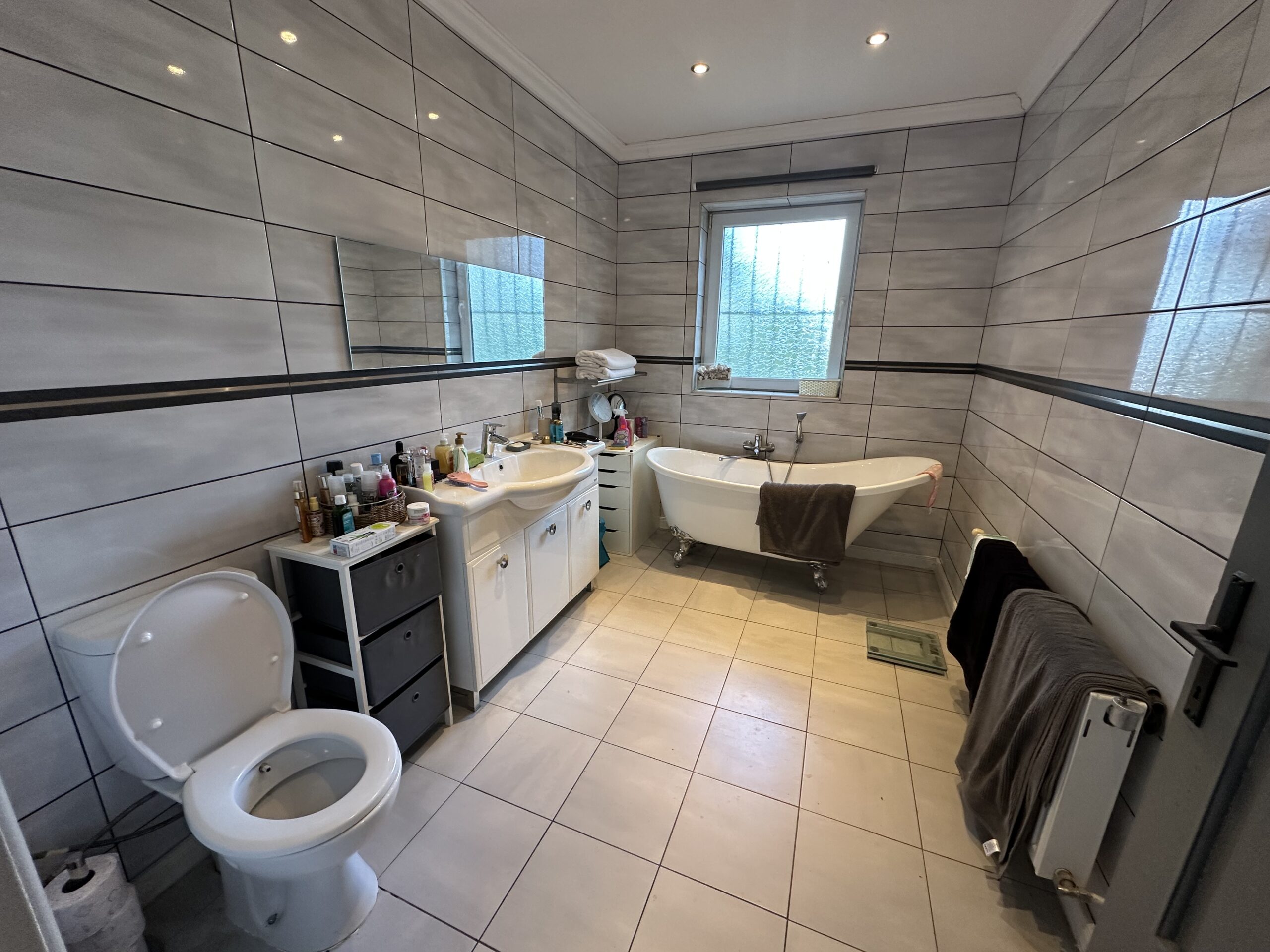 โข Two elegant bathrooms, one with a Victorian freestanding bath ๐